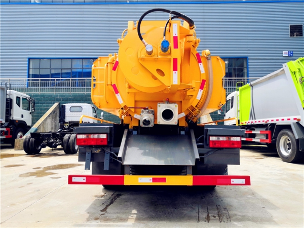 吸污部分:3.8方污罐,罐體5mmQ235優(yōu)質(zhì)碳鋼,配淄博SK-9水循環(huán)泵(北方地區(qū)可選裝真空油泵),8米吸污管一根,進(jìn)氣管加過濾網(wǎng),防溢閥加高,后蓋卡扣鎖緊,前視污亮管,后尾部加裝1個(gè)力拓牌**mm、150mm的球閥均帶進(jìn)出口,罐體帶舉升功能,后門帶液壓開啟。