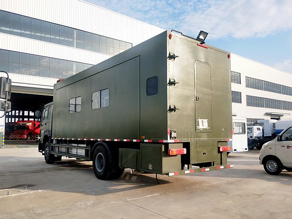 宿營車上,設(shè)置了床位,衛(wèi)生間,**用空調(diào),換氣逃生窗口,高原灶,抽油煙機(jī),衛(wèi)星電視,煙霧傳感器,發(fā)電機(jī),照明設(shè)備,暖風(fēng)機(jī),保險(xiǎn)柜等。這輛車廚房,衛(wèi)生間,床鋪一應(yīng)俱全,保證了野外住宿的舒適性,使官兵更好的執(zhí)行野外任務(wù)。