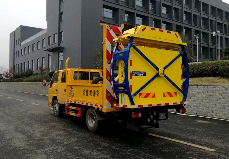 江鈴藍(lán)牌防撞緩沖車上裝配置:防撞緩沖車尾部設(shè)置防撞緩沖塊,防撞緩沖塊采用液壓升降裝置,還配備車載一體化的電子屏、電子箭頭標(biāo)志牌、頻閃燈及爆閃燈多種**示燈,能夠?yàn)楹蠓杰囕v提供**示和指示方向。箭頭指示標(biāo)志可對左、右及禁止通行進(jìn)行導(dǎo)向指示,對道路車輛提供主動安全引導(dǎo)和安全**示,限度降低施工對**流量的影響并確保安全。尾部升降和燈具采用遙控**,可在車輛附近安全**防撞緩沖塊的升降和**示燈的開關(guān)。